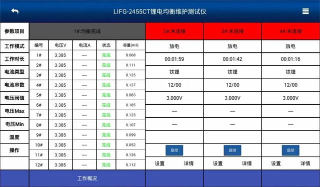 保存參數後啓(qi)動測試,點擊啓(qi)動後查看工作(zuò)狀态,當均衡到(dao)達停止條件,所(suǒ)有通道顯示完(wan)成時,結束工作(zuo)。