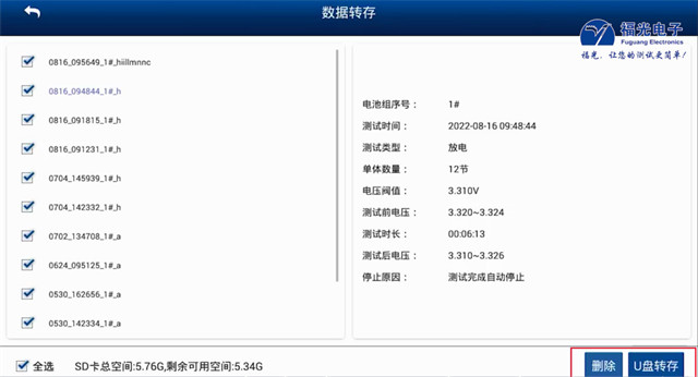 測試電池:勾(gou)選的電芯進行(hang)測試
