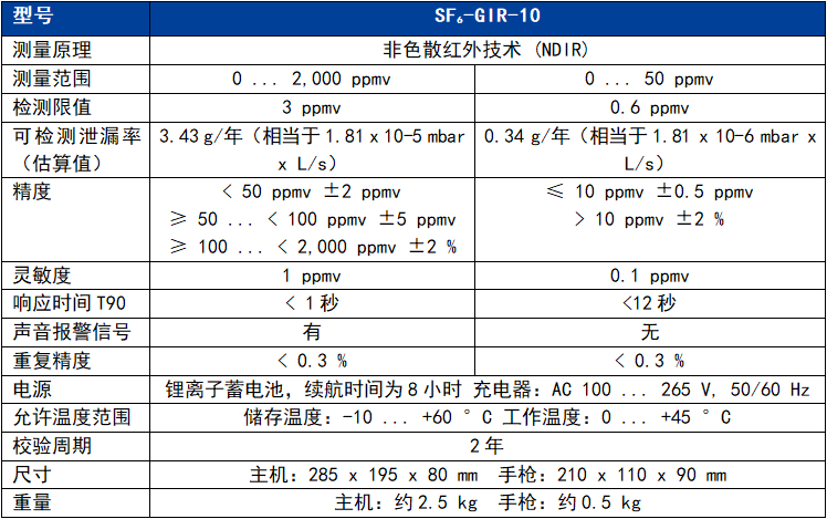 SF6-GIR-10 型氣體(ti)探測儀 可檢測(ce)到極低濃度的(de) SF 6 氣體,是檢測洩(xie)漏位置和洩漏(lòu)孔大小的理想(xiǎng)選擇。 GIR-10 型采用非(fēi)色散紅外技術(shu) (NDIR) ,即使在小洩漏(lòu)量情況下也能(neng)實現快速響應(ying)和可靠的測量(liang)。儀器易于操作(zuò)且具備卓越的(de)穩定性,包括手(shou)槍和主機✔️兩部(bu)分,且兩部分均(jun1)配有數值顯示(shì),二者均🌈可讀取(qǔ)✉️當前有關 SF 6 氣體(ti)的讀數。