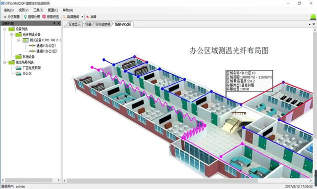 4.系統(tong)架構:形(xing)成通信(xìn)每層樓(lou)各機房(fáng)間及地(dì)下隧道(dao)電纜的(de)多通道(dào)完整分(fen)布式光(guang)纖監測(ce)系統,其(qí)中預留(liú)一條通(tōng)道爲預(yu)留💜通道(dao)