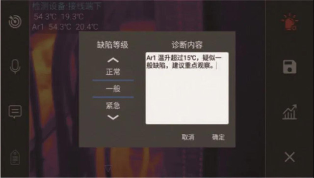 内(nèi)置DL/T664-2016版的《帶電設(shè)備紅外診斷應(yīng)用規範》和專家(jia)經驗;根據測✨試(shì)🔅任務自動匹配(pei)相關設備診斷(duan)規則,根據診斷(duan)結🔞論自動給予(yu)方案建議,并将(jiang)診斷結論和解(jiě)決方案保存于(yú)當次檢測任務(wù)内。大大降低了(le)用戶的使用成(chéng)本和學習成本(ben),大幅提升檢測(ce)效率。