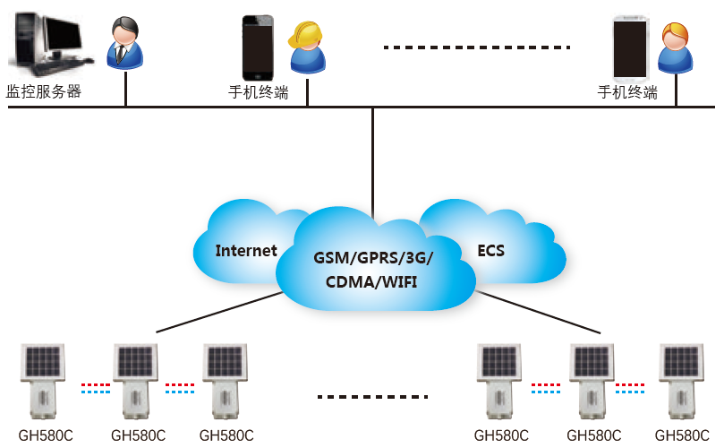 機(jī)、太陽能電池闆組(zu)成。監控服務器機(jī)可爲各省公司配(pei)備的服務器,也可(kě)爲用戶自行配備(bèi)