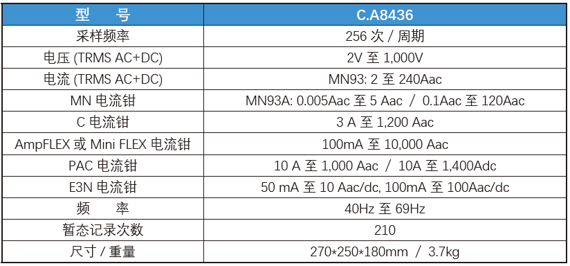 ● 可測(ce)量電壓和(hé)電流的最(zui)大值、最小(xiao)值和平均(jun1)值,波峰因(yīn)素,峰值,K因(yin)子技術參數(shù)