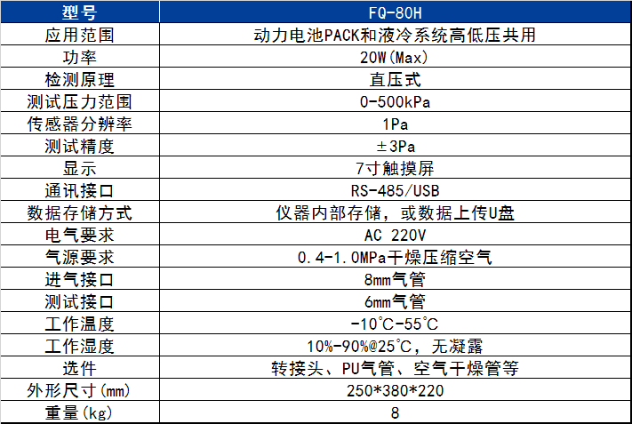 FQ-80H 氣密測試(shì)儀(高壓)是(shì)福光電子(zǐ)針對新能(néng)源行業推(tui)❌出的一款(kuan)高精度無(wú)損檢測設(shè)備,具有業(ye)界最高的(de)靈敏度和(he)穩定性。該(gāi)設備主要(yào)運用壓縮(suō)空氣爲介(jie)質,通過檢(jiǎn)測産品内(nèi)部或密閉(bi)腔體内壓(ya)力微量變(bian)☁️化,判斷待(dài)測試産品(pin)🔴的密封性(xìng)。具備使用(yong)方便快捷(jie)💃、檢測成本(běn)低、對環境(jing) 及被測對(dui)象無污染(rǎn)等諸多優(yōu)點,有效提(ti)升新能源(yuan)行業🍉客😘戶(hù)的檢測效(xiao)率與産品(pin)質量。