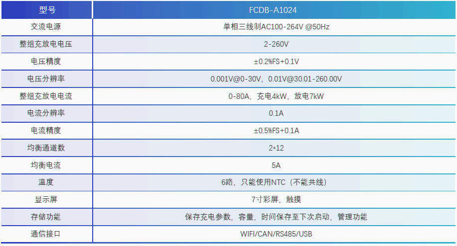 FCDB-A1024锂電充(chong)放均衡一(yī)體機集整(zheng)組充放電(dian)、電芯均衡(heng)爲一體機(ji),提🔴高了對(dui)锂電池試(shi)驗測試、售(shòu)後維護的(de)工作效率(lü)。