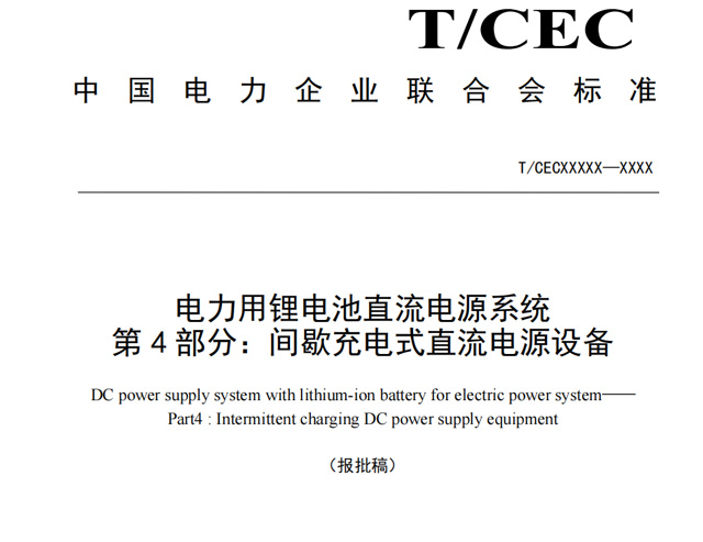 《電力(lì)用锂電池直流電(dian)源系統第4部分:間(jian)歇充電式直⛷️流電(dian)🈚源設備》規定了電(dian)力用锂電池直流(liú)電源系💘統間歇充(chong)電式🍓直流電源設(she)備基本參數、技術(shù)要求、試驗方法、 檢(jiǎn)驗🈲規則、标志、包裝(zhuang)㊙️、運輸和貯存等要(yao)求🔱。