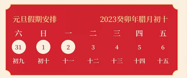 況,就2023年(nián)元旦放假安排(pai)通知如下: