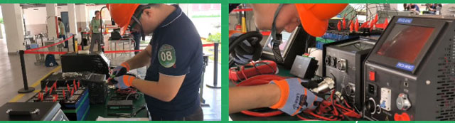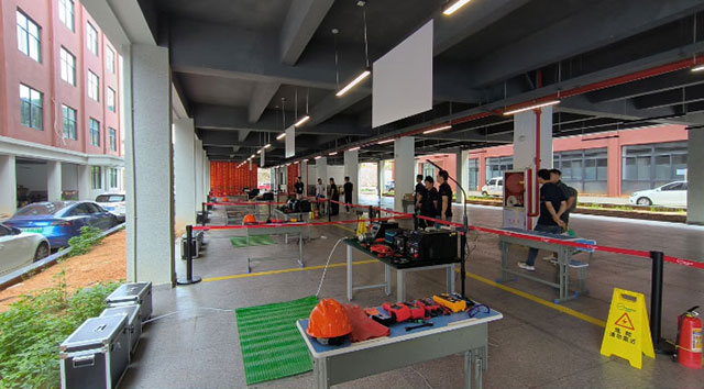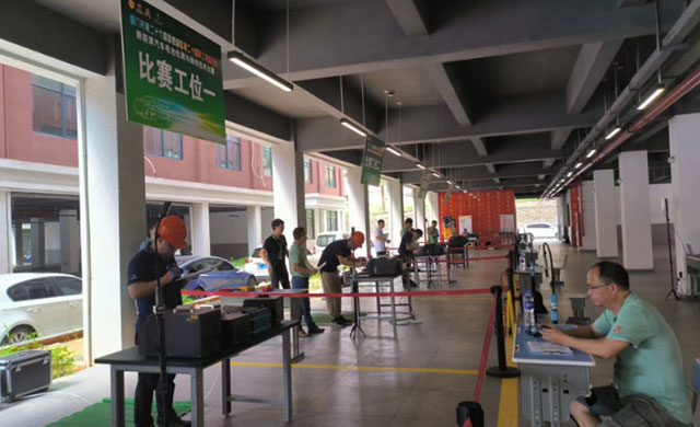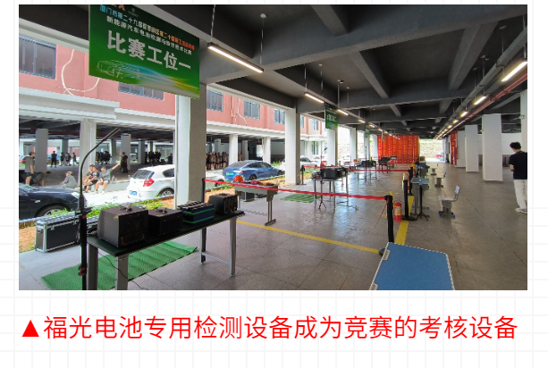 本次競(jing)賽要求對(dui)新能源汽(qi)車電池進(jin)行檢測與(yu)維 修、正确(què)選擇和使(shi)用檢測及(ji)維修所需(xu)的設備、工(gong)具☂️、 儀器,并(bing)通過标準(zhǔn)模組和密(mì)封件進行(hang)模拟比賽(sài)。 競賽當天(tian),福光技術(shu)團隊趕赴(fu)現場提供(gòng)支持,全 程(cheng)參與設備(bèi)安裝調試(shì)及指導工(gōng)作,保障了(le)競賽順利(li)進🏃♂️ 行。
