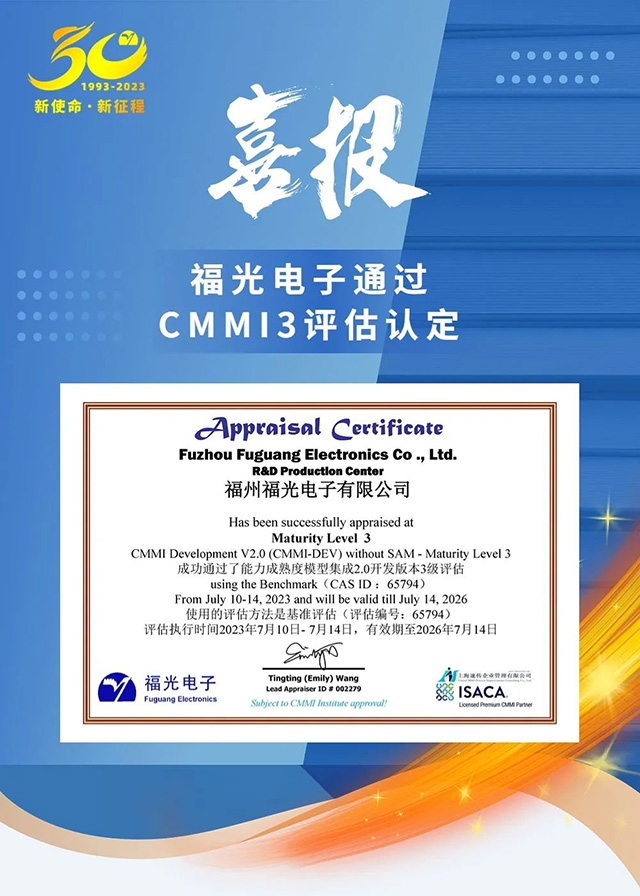 未(wei)來,福光電子(zǐ)将以CMMI3級認證(zhèng)爲新的