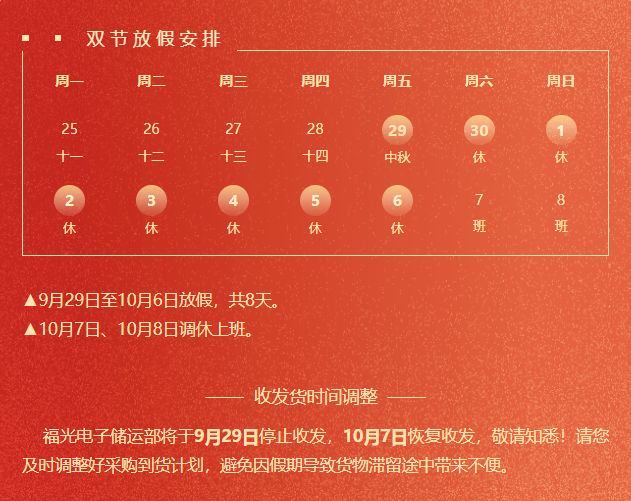 值此2023中秋(qiū)、國慶雙節(jiē)即将來臨(lin)之際,福光(guang)電子向每(měi)一位客戶(hu)、供應商、合(hé)作夥伴、友(yǒu)商、各界朋(péng)友緻以衷(zhōng)❄️心的感謝(xie)!感謝您們(men)一如😄既往(wǎng)的信任和(he)支持!
