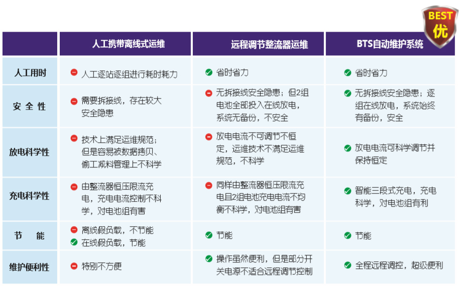 結論:BTS系統從(cóng)人身安全、放電科(kē)學性、節能環保、維(wei)護便利🔴性等🔴方🈚面(miàn)各項指标均優于(yu)傳統維護技術