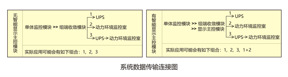 ● 系統數(shu)據傳輸(shu)方式靈(líng)活, 監控(kòng)數據傳(chuan)送可滿(mǎn)足任何(hé)機房各(gè)種傳輸(shū)、對接需(xu)求具體(tǐ)方式如(ru)圖: