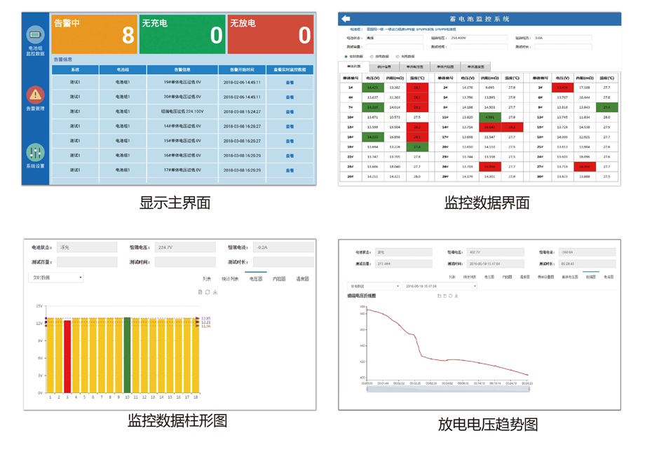 ● 監(jiān)控單體(ti)電池電(dian)壓、内阻(zǔ)、極柱溫(wen)度、紋波(bō)電壓。