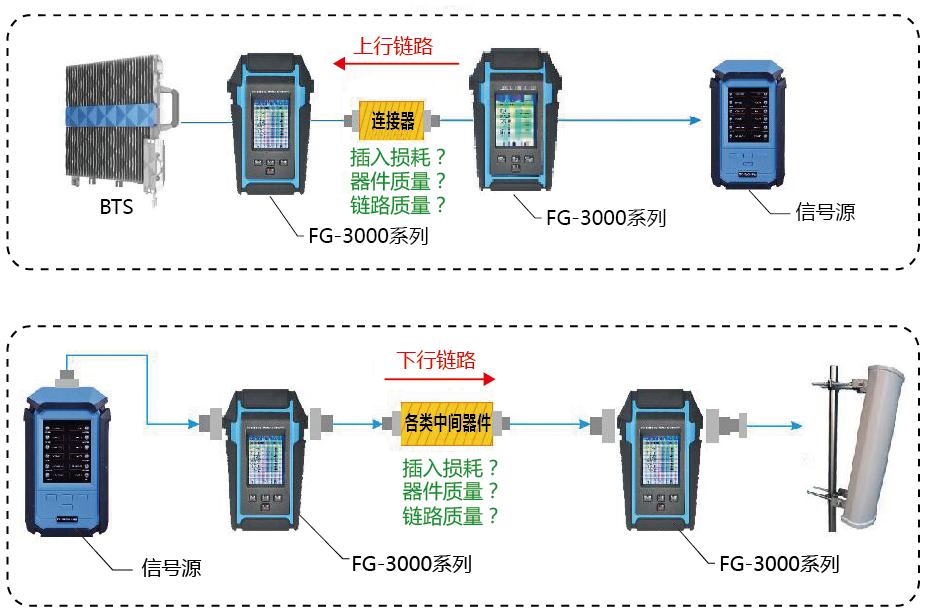 在實際的(de)基站設計和建(jian)設過程中,工程(chéng)人員把注🌏意力(li)集中在下行鏈(liàn)路的覆蓋和優(yōu)化方面,而忽視(shi)了上行鏈路對(duì)整個👄系統的影(ying)響。這樣,就會在(zài)基站建成啓⭕用(yòng)之後,出現接收(shou)終端信号顯示(shi)充足,但卻異常(chang)掉話甚至無法(fǎ)呼出的現象。這(zhè)種故障通常都(dōu)是天饋系統的(de)上行鏈路和下(xia)行鏈路在信号(hao)強度上出現了(le)不平衡所緻的(de)。下行📧鏈路損耗(hao)是否過大有很(hen)多方法可以測(ce)試;但⁉️是,測量上(shang)行鏈路損耗時(shi)❗,接收終端不可(ke)能作爲穩定的(de)信号源,因此有(yǒu)便攜、穩定功率(lǜ)的射頻源就顯(xiǎn)得尤爲重要。GSM-R系(xi)統爲♋上行受限(xiàn)系統,上行損🔞耗(hao)過大的故障占(zhan)鏈路不平衡故(gù)障中的絕大部(bù)分,而查找是連(lian)接點還是連接(jie)器件的問🛀題就(jiù)需要有專用的(de)鏈路設備進行(háng)測試。