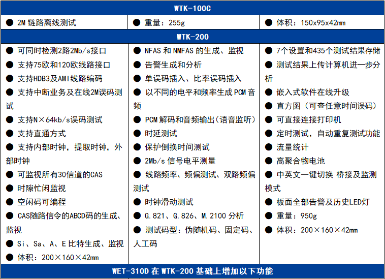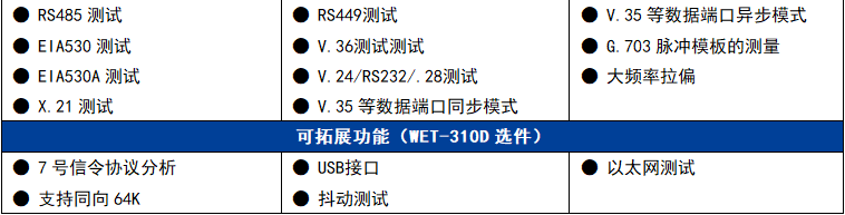 新推(tuī)出的系列(lie)2M及數據鏈(lian)路綜合測(cè)試儀可用(yòng)于測💜量‼️與(yǔ)🌈分析傳🧡統(tǒng)E1傳輸系統(tǒng)的性能參(cān)數并處理(lǐ)各種✍️故障(zhang)⭐。它們集誤(wù)碼測試、幀(zhen)結構分析(xi)、時隙分析(xi)、信念測試(shi)、信号分析(xi)、告警分析(xi)、PCM仿真等多(duō)種功能于(yu)一體。WET-310D還擁(yong)有更豐富(fù)的功能及(jí)選件功能(neng)。